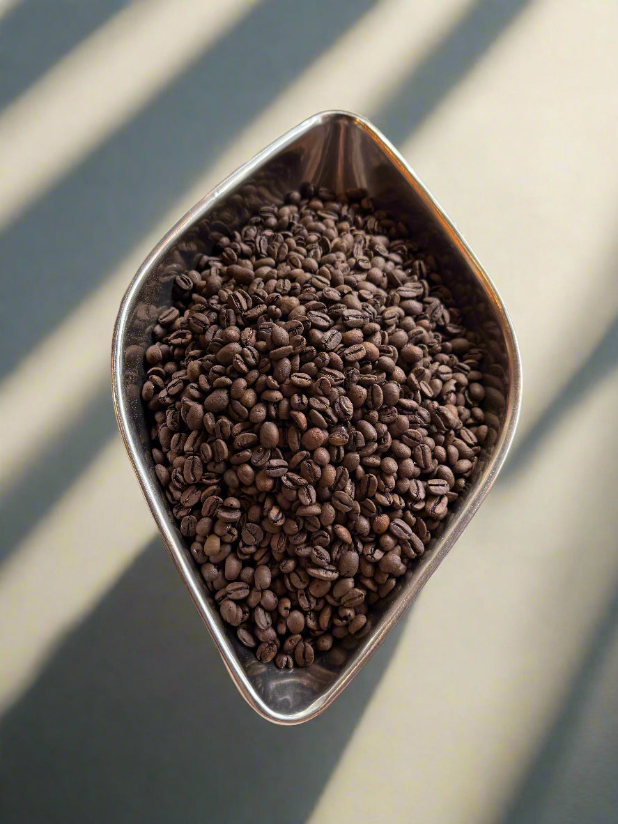 Characteristics: A rich mix of 'Arabica' and 'Robusta' beans. Our darkest roast, producing a very strong coffee which is both rich in flavour and high in caffeine. Full-bodied and bold with bitter chocolate notes.