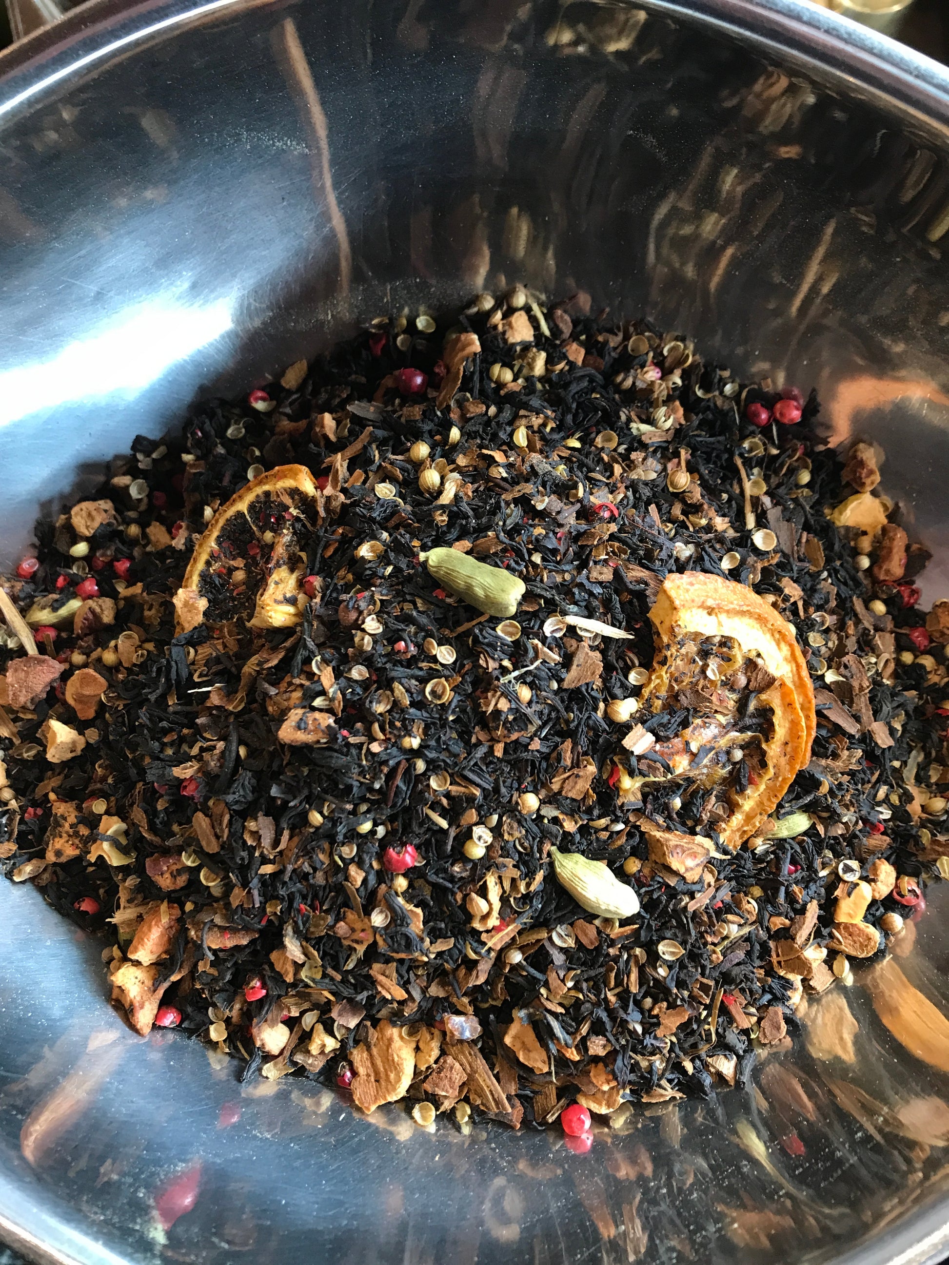 Characteristics: A black tea base masterfully combined with sweet apple and orange pieces, fragrant cinnamon bits, coriander, cardamom, cloves and hot, fruity pink peppercorns.